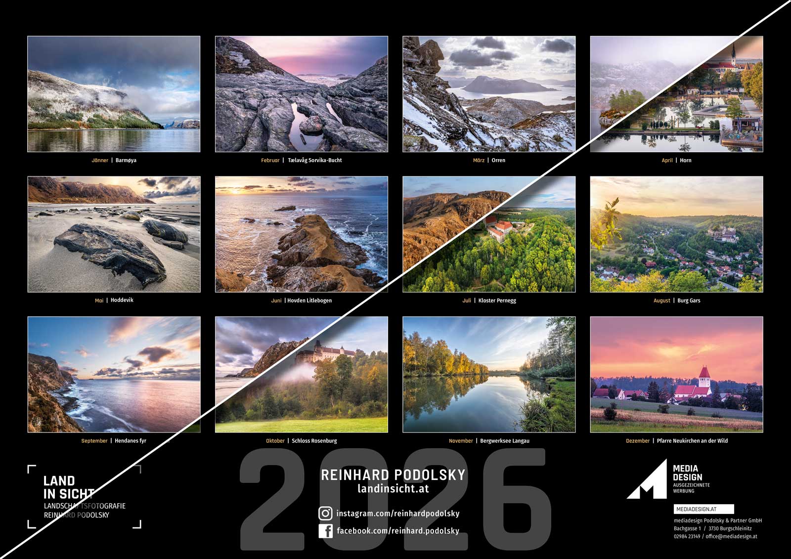 Die neuen Fotokunstkalender 2026 des Landschaftsfotografen Reinhard Podolsky sind da!
